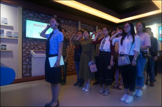 参观到最后一站,全体党员举起紧握的右拳进行了一次特殊的入党宣誓:“我自愿加入中国共产党,拥护党的纲领,遵守党的章程,履行党员义务,执行党的决定,严守党的纪律……”气氛庄严肃穆,声音坚定有力,宏亮铿锵。