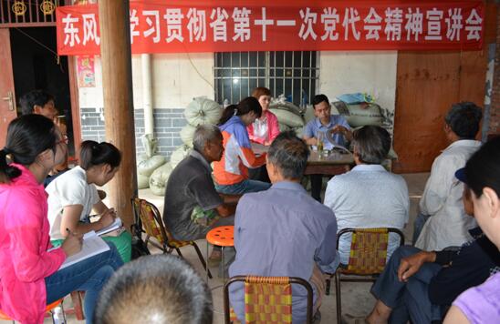 随后,在东风村五组,剑阁县政府办主任杨光强为该组村民及办公室党员干部宣讲了省第十一次党代会精神,杨光强要求,全村人民撸起袖子加油干,为如期完成今年贫困村退出和建档立卡贫困户脱贫而奋斗。
