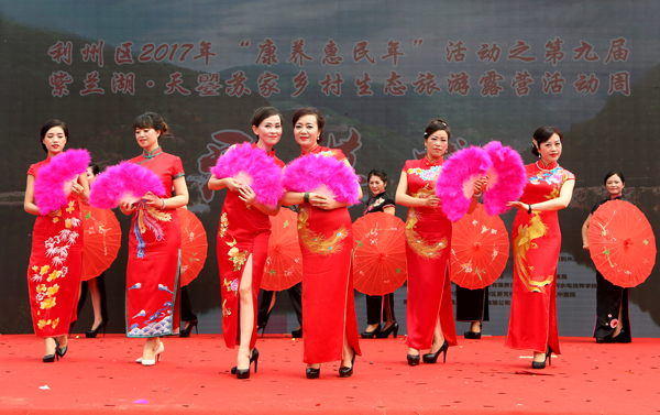 开幕式后,举行了丰富多彩的文艺演出,歌曲《女儿河》、《天曌山我的山》,脱口秀《巴蜀笑星赵花花》,舞蹈《康养幸福的地方》,民歌《欢天喜地》、《远方的客人请你留下来》,旗袍秀《水墨兰亭》,歌伴舞《山水广元》……来自广元市、利州区及宝轮镇的文艺工作者,用精湛的演技、丰富的节目,为当地村民和游客们带来了一场精美的文艺大餐。