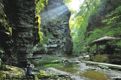 米仓山自然保护区自然景观和人文景观等旅游资源丰富。在自然景观旅游资源中尤以地景,即地质景观、山景、洞景、峡景、崖景等最突出。茂密的森林,其中80%以上是天然林,林海茫茫,浩瀚壮丽。2017年初获得四川省首批“国家级森林氧吧”称号。(图片来源市旅发委)