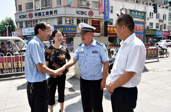 在旺苍县交警大队执勤点,何开金与执勤交警亲切握手,对他们战高温、斗酷暑确保全县人民群众的平安表示感谢,同时嘱咐他们在做好本职工作的同时,切实做好各项防暑降温措施,鼓励他们继续发扬吃苦耐劳的精神,克服一切困难,履职尽责、勇于担当,为广大群众出行营造畅通、安全的环境。