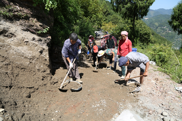 45岁的黄万林一家5人,原来,两个孩子上学,自己又有病,因而致贫。他家居住半山上,离通组路有170余米,“修建通户路,国家补助只有100米,另一家的通户路跟我家的有40多米重复,所以,我自己只修30米。”