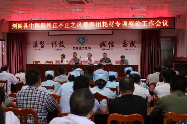 四川新闻网广元9月16日讯(杨玉明王祝 文/图)16日下午,剑阁县中医院在院门诊楼六楼学术厅召开纠正医药购销和医疗服务中不正之风暨医用耗材专项整治工作会,院纪检监察员(纪委书记)罗锦生同志主持会议,院科干部、重要岗位医务人员共200余名参加了会议。