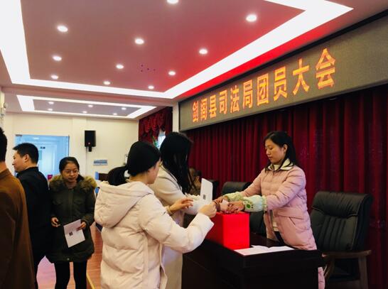 四川新闻网广元12月1日讯(胡吉 邓君 文/图)庄严的团旗照耀团结的集体,奉献的青春迸发无穷的力量。11月30日,剑阁县司法局胜利召开了全体团员大会,团县委书记雍松涛、县司法局长伏大江及27名团员青年参加了本次会议,大会由副局长雍大庆主持。