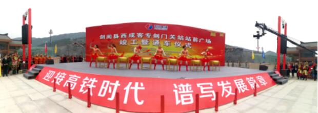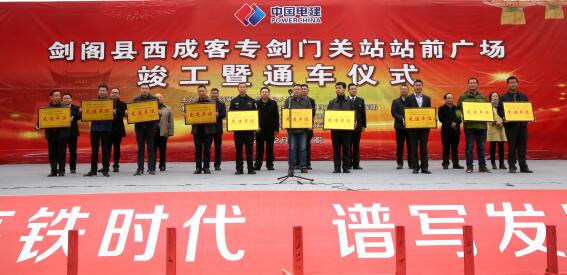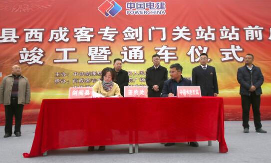 在通车仪式上,宣读了剑阁县委、县人民政府表扬决定,剑阁县西成客专剑门关站站前广场指挥部等十个单位获得先进集体表扬;剑阁县人民政府与水电五局签订了战略合作协议。