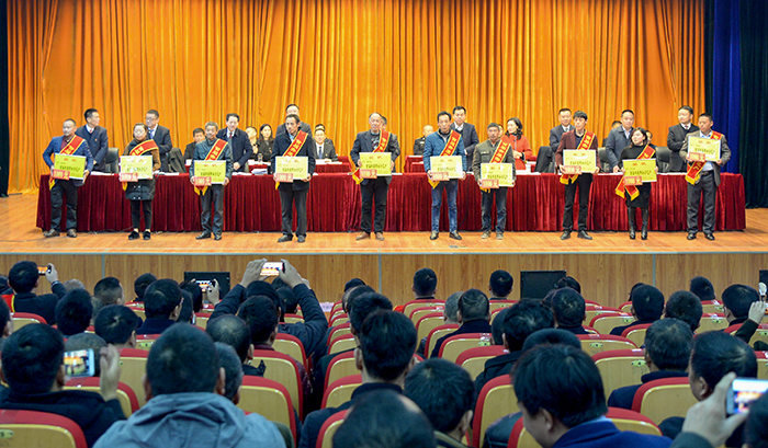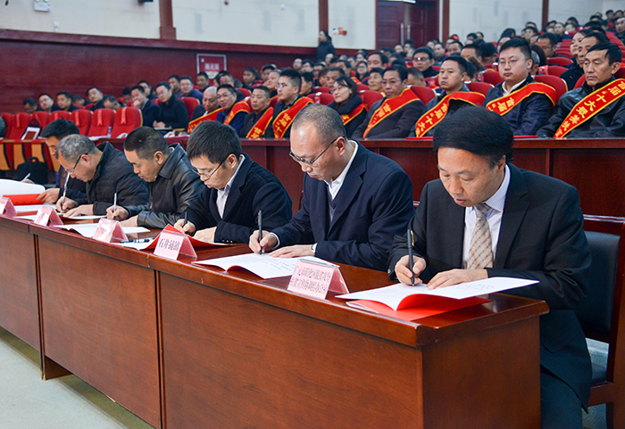 会议还观看了中央、省、市有关脱贫攻坚决策部署视频和贵州省赤水市脱贫攻坚迎接国家检查验收视频;总结了2014年以来脱贫攻坚工作,安排部署了2018年区摘帽相关工作;宣读了表扬表彰通报及聘任文件;进行了表扬表彰颁奖及聘书颁发仪式和大会宣誓,启动了区摘帽300天倒计时;签订了军令状并作了誓师表态发言。