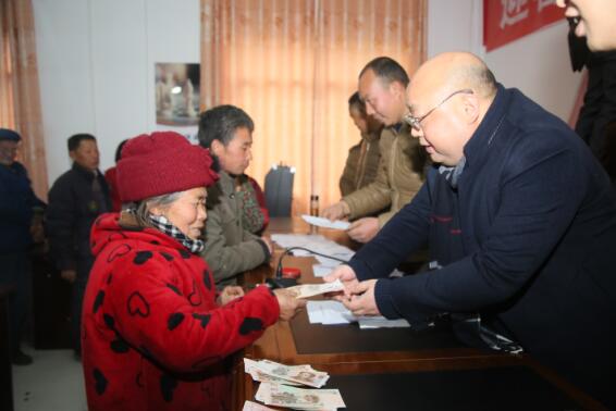 四川新闻网广元1月8日讯(高志农 文/图)“王寿星,160元!”……听到喊声,65岁的王寿星颤悠悠地走到前排,在发放表上自己的名字下盖上手印,然后从对口帮联迎春村的县委副书记汪化彬手中接过了160元的春节“红包”。