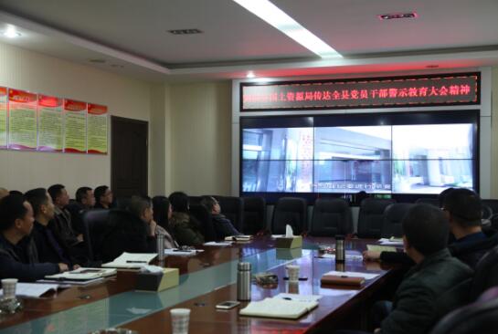 四川新闻网广元1月30日讯(夏翠屏 文/图)近日,剑阁县国土资源局组织机关中层以上干部和各国土资源所所长,集中观看警示教育视频,及时学习传达县委召开的全县党员干部警示教育大会精神。