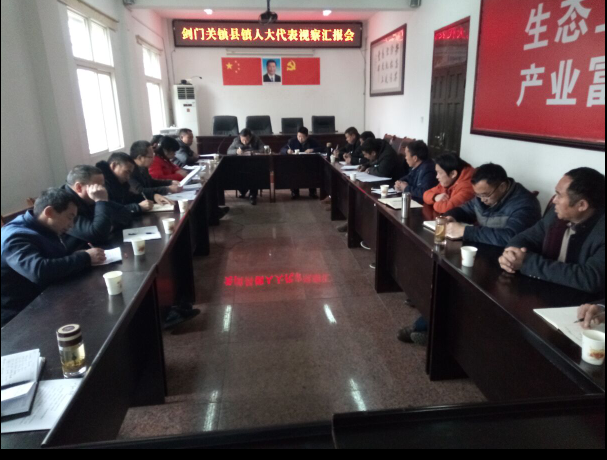 在随后的汇报会上,镇人大主席杨明卓就如何学习领会党的十九大精神,做一名称职的人大代表提出了要求。党委副书记张兴永汇报了关于2017年精准扶工作开展情况并与代表们交换了意见。汇报会上代表们积极发言,谈视察感受,积极为剑门关镇各项工作建言献策。代表们纷纷表示,回去后一定做好表率,一要当好国家政策的宣传员。积极宣传国家的政策法规。二要当好示范员。要通过宣传政策、带头示范、以身作则等方式,不断改善和规范群众的行为和观念;三要当好人民群众的通讯员。积极聚民愿,汇民智,把人民群众的呼声传递好,并认真思考,为镇党委政府提出高质量的建议意见。