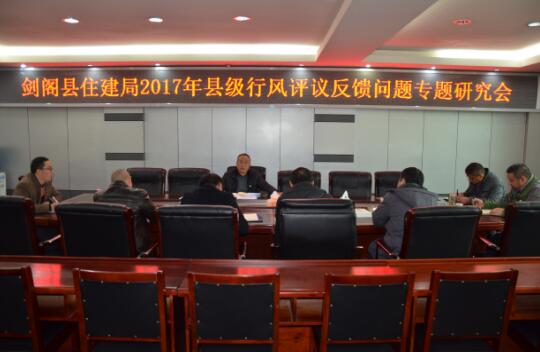 四川新闻网广元1月31日讯(安云 文/图)为进一步加强系统作风效能建设,根据2017年县级部门行风评议工作会的有关情况及反馈的住建系统作风效能建设存在的问题,2018年1月29日,我局召开专题研究会,就反馈的作风效能问题进行专题研究落实,会议由局党组书记、局长张俊主持,局党组、行政班子成员全体参加会议。