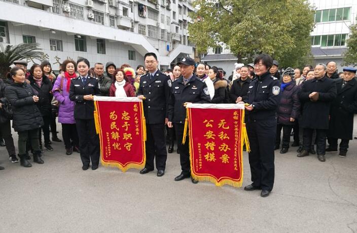 四川新闻网广元2月6日讯(周平 文/图)2月2日上午9点半,广元市公安局大院内锣鼓宣天,受害群众将两面锦旗和一封感谢信送到民警手中,感谢民警为他们讨回了1.13亿血汗钱。