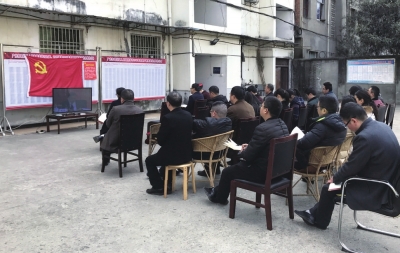 | 2月22日下午,利州区嘉陵街道办事处党工委组织党员干部职工认真收看全市作风纪律深化年动员大会。王晓岚 摄 |