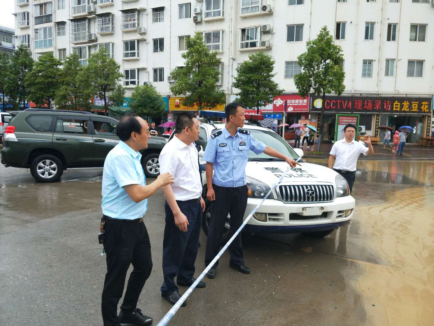 6月26日8时许,随着清江河的水位不断上升,大队派出的巡逻人员不断通过手持对讲机不断反馈城区汛情——“上寺至下寺道路全线漫水”、“滨河路天赐温泉路段河水已经漫过河堤”、“龙江大道紫金酒店路段河水已经漫过河堤”、“天一名城下穿道路被淹”、“中医院下穿道路被淹”、“看守所路段被淹”。在接到各巡逻队反馈的信息后,杨超大队长迅速按照既定方案,抽调办公室、特勤中队人员组成抗洪抢险第一梯队分赴各受灾点。大队民辅警在到达现场后,迅速组织周边群众疏散,并设置安全警戒线;同时通过“远端分流,近端管制”方式对漫水路段实行交通管制。