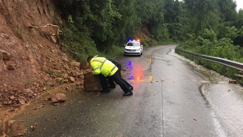 剑阁交警合理安排调整勤务,组织大队民辅警深入一线排查,重点排查连续降雨天气时,由于暴雨引发的山体滑坡、路基垮塌等次生灾害造成交通瘫痪的隐患路段,有效防范自然原因引发的道路交通事故发生。