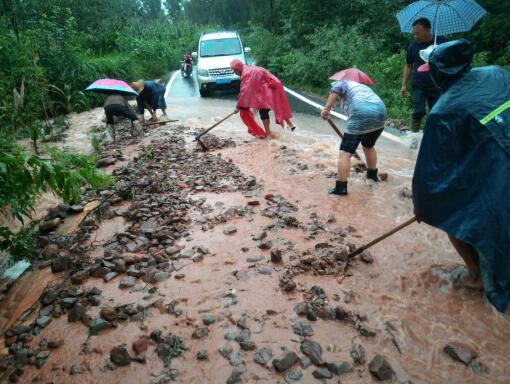 洪灾面前,工作队员披荆斩棘,发挥党员模范带头作用,冲锋在抗洪抢险的第一线。东宝镇西阳村通村道路旁边山体滑坡,队员们冲锋上前排疏通道路;北庙乡明兴村的桥头上汪洋一片,工作队员在桥头站岗,帮助群众安全渡过漫水桥。锦屏乡青墟村的堰塘水位上涨,工作队员村立即组织排水防止垮盖。抢险应急,哪里有险情,哪里就有他们的身影。全县驻村工作队员工清除滑坡土石方1000余立方米,疏通排水沟渠270余公里,疏通道路203余处。
