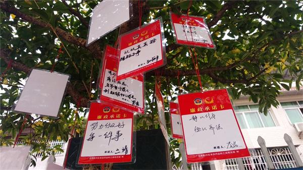 集体承诺活动在全区各个乡镇部门如火如荼开展:利州区食品药品和工商局办公院内,该部门的党员干部也纷纷在桂花树枝头挂起了自己的廉洁过节承诺……