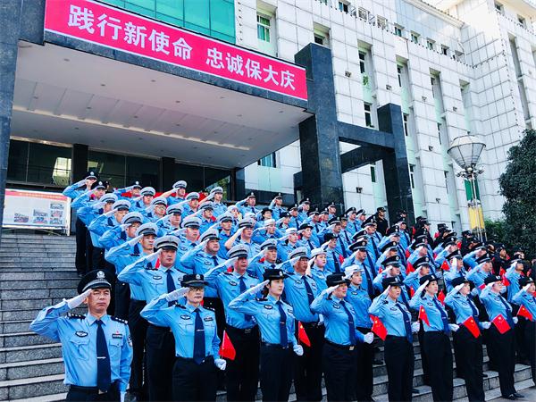 “我和我的祖国,一刻也不能分割,无论我走到哪里,都流出一首赞歌……”现场虽然没有专业的麦克风和音响设备,但是伴随着《我和我的祖国》悠扬的旋律,120余名公安民辅警整齐队列,挥舞着手中的旗帜,以精神抖擞、声音洪亮、慷慨激昂的歌声,唱出了对祖国的真挚祝福和无限热爱,唱出了人民公安的壮志豪情,唱出了人民警察的使命光荣。