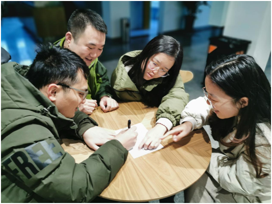 “心向阳光,无所畏惧。阳光是最好的防腐剂,我们是阳光队。”知识竞赛结束后,户外拓展训练随即开始。随着教练的一声令下,全体队员放下职务、丢掉包袱,快速融入团队角色,在规定的时间内组成两支队伍,并以小队为单位进行团队展示。随后,在各队教官的带领下,队员们充分发挥团队协作精神,顺利完成了隔空取水、终极密码、瞎子与哑巴等多个比赛项目。