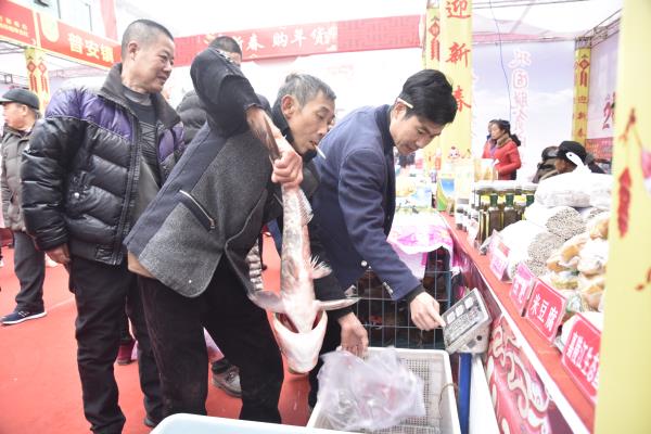 “把广场变展场,把产品变商品,把喜悦变丰收,搭建起了买与卖的平台,铺起了产与销的道路,让大家在家门口就能买到健康绿色的本地鲜活农产品,让我们在扶贫道路上助力自己一程。”副县长梁赛在致辞中表示,2019年我县四川扶贫标识产品企业销售额达到7625万元,其中线上交易1823万元,全县上下掀起了扶贫消费高潮,我们的挂联帮扶干部通过“以购代扶”“以购代捐”等活动,直接购买贫困户农产品达1000余万元。希望在这次迎春年货大集活动中,各责任单位要履职尽责,扶贫产品企业、专业合作社、种养大户要诚信经营,切实保障产品质量,确保消费者购买到放心满意产品!(剑阁县委宣传部供图)
