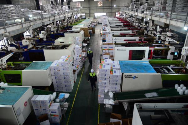 “供货需求量很大,生产都忙不过来。”王翔说,公司已有39台注塑机投入复工生产,127名工人到岗,每天可生产3000余箱注塑产品。目前,公司已接到全国范围内的80余个订单,开通2个物流平台,9辆大货车往返运送货物,最大程度保障一线工作人员的物资供应。