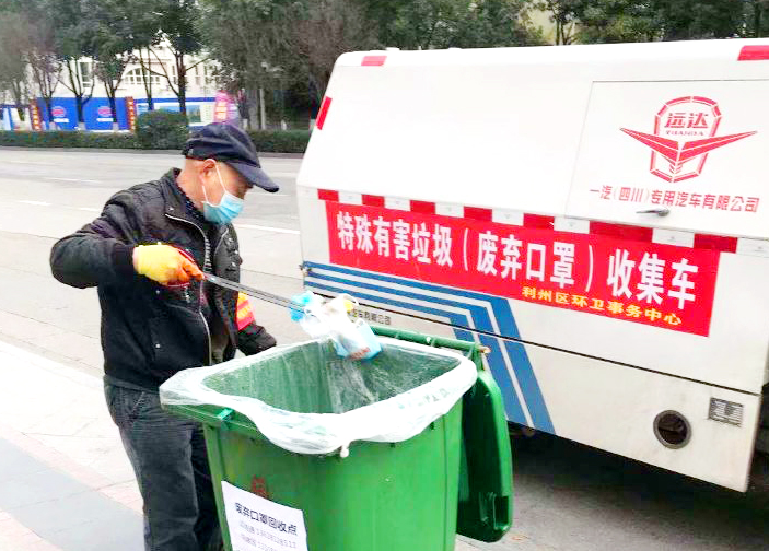 为进一步做好新型冠状病毒肺炎疫情联防联控工作,规范处置废弃口罩,利州区爱卫办及时印发了《利州区关于及时收运处置废弃口罩的紧急通知》,在各乡镇(街道)的村社区、物管小区、开放式小区、公共场所、机关企事业单位、商业集中区等人口密集区域,选择醒目、方便投放的位置,设置“废弃口罩回收点”,并与其他垃圾桶隔离放置,配备专人看守。
