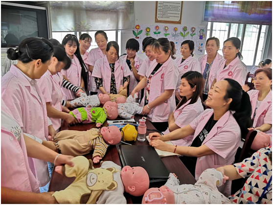 (图为:武连镇月嫂培训班正在讲解新生儿护理知识)