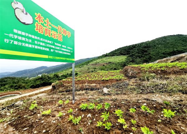 “过去茅草满坡成荒原,莫人照管一亩三分田;如今好政策来加巧干,粮食产量翻又翻,瓜果蔬菜香满园……”6月19日一早,大石镇前哨村柳树坪魔芋基地里,10组村民胥金山边在地里忙活边哼起自编山歌。