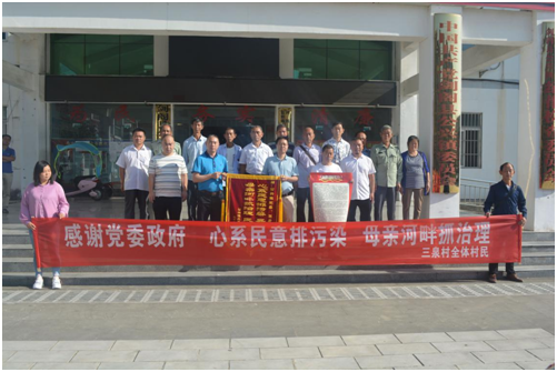 三泉村自今年6月份划归公兴镇党委政府管辖后,村民将河道污染事件反映给政府环保部门,党委政府高度重视,立即安排镇环保部门与县环保局协同治理,为了维护好群众的切身利益,尽快让村民们吃上干净的水,该镇领导干部们与时间赛跑,多次顶着烈日、冒着大雨到村处理养殖场污染事宜,先后采取了水质化验、藕田补漏、放水洗河等措施,更为关键的是,在调查取证后,党委政府果断拆除养殖场排污管道,对河道进行污染物打捞及石灰消毒处理,并明确表态:“养殖场环保指标若未达标,则立即进行整顿”,这便从根源上解决了河水污染问题,使村民们心心念念的母亲河恢复了清澈,党委政府以民为先的执政理念和对人民高度负责的工作态度深深地感动了全村的村民。