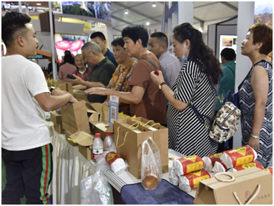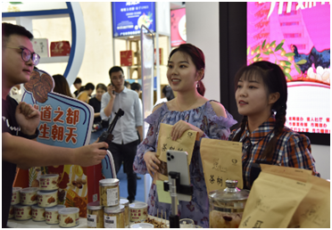 “朝天核桃名气大,吃过几次朝天的核桃饼就有点‘上瘾’了,这次美食节,我特意来这边,准备买点垭垭上月饼和中子的核桃制品。”剑阁县的王彬先生一走进展馆,就被朝天展区大屏幕上滚动播放的朝天特产所吸引。展区内,货架上摆满了琳琅满目、色味俱佳的特产商品,通过展区工作人员的一番细致介绍,王彬购买了价值一千余元的朝天特产。“刚刚试吃了几块,觉得手工核桃月饼味道很不错,价格又实惠,我买了一些打算送给亲朋好友,让他们都尝尝。”购买的特产大包小包地堆放在面前,王彬正打电话叫朋友过来帮忙提走。