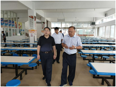 慰问活动结束后,杨亚培一行在市教育局谢正臣等相关领导的陪同下,实地检查了学校食堂、学生宿舍及门卫管理等工作,并对学校新冠肺炎疫情防控、开学条件保障、学校安全风险防控等工作进行了详细询问和了解。