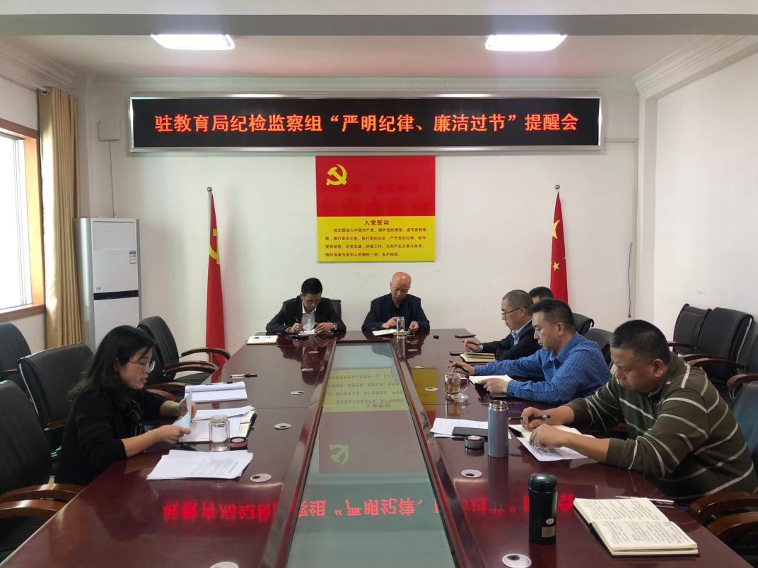 9月29日,该县纪委监委驻县教育局纪检监察组召开了“严明纪律、廉洁过节”提醒会,会议指出“两节”期间是“四风问题”的易发和高发期,教育系统全体党员干部、教职员工都要严守政治纪律和政治规矩,一是严明工作纪律,加强作风建设。二是严守工作规定,加强队伍建设。三是进行廉洁提醒,加强思想建设。四是严格执纪问责,加强纪律建设。教育局党组主要负责人要切实担负起第一责任人的责任,在“两节”期间不定期开展对廉洁纪律、工作纪律和值班情况的监督检查,对发现的顶风违纪问题,依纪依规严肃处理,绝不姑息,努力营造教育系统风清气正的节日氛围。