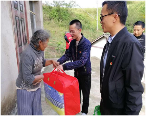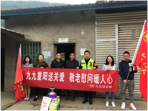 川北项目部。10月24日,该项目部组织“党员先锋队”和“青年突击队”与中共剑阁县下寺镇沙溪社区委员会赵副书记和一支部张书记一同对社区高龄老人进行走访慰问,给他们送去关怀问候。大家与老人们一起聊家常,详细询问他们的饮食、生活、健康等方面情况。随后,项目部青年志愿者将带去的米、面粉、取暖器等日常生活用品一一送到老人手中,表达对老人们的关心和祝福。老人们在接过慰问品时,感动不已,激动的表示“非常感谢大家逢年过节时都不忘我们这些老人。”