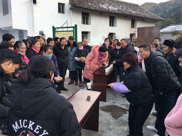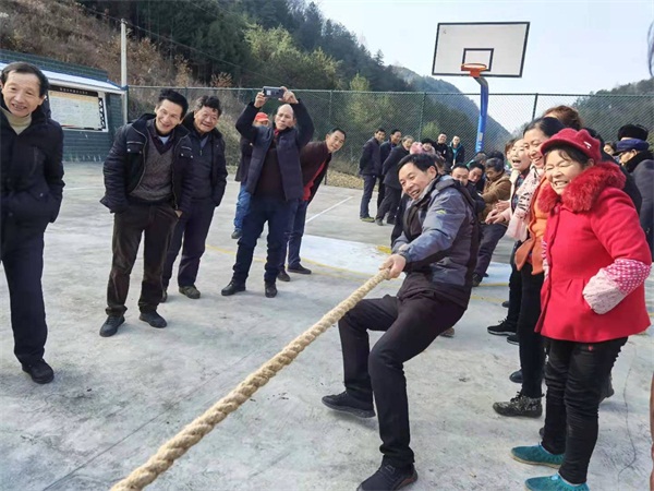 在接下来的趣味运动会上,脱贫攻坚有奖知识竞答、拔河比赛、抬水杯比赛、抢凳子比赛、篮球比赛等项目依次开展。