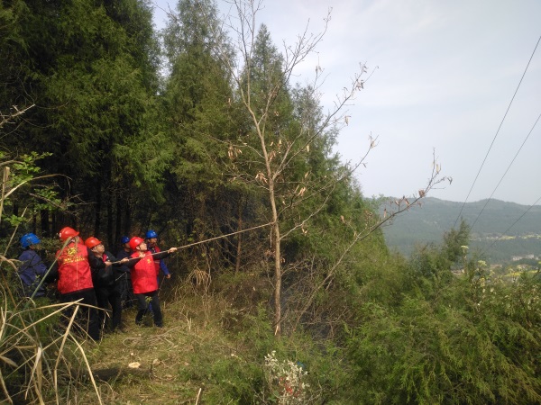 四川新闻网消息(谭万方 王春波) “爬树、绑风绳、锯树……”3月17日,在10千伏柏店线西至支线22#至23#杆现场,国网四川剑阁县供电公司9名党员正在进行10千伏线路通道清理,消除线路通道内火灾隐患。这是该公司行政党支部联合江口党支部共同开展“党建+防山火”主题党日活动,发挥党员在防山火工作中的“硬核”力量。