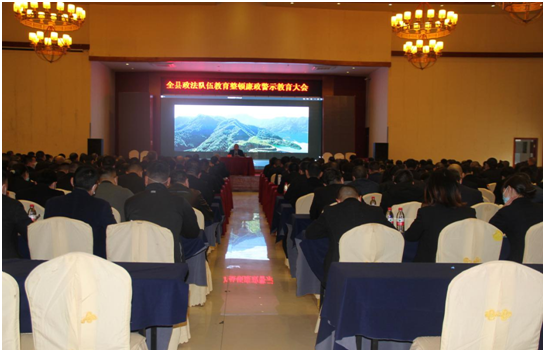 四川新闻网消息(邢行) “政法机关是“国之重器”,全体政法干部作为党和人民掌握的‘刀把子’,务必以坚定的政治立场、高度的政治清醒、强烈的政治自觉,恪尽职守、忠诚履职,坚定不移地做国家政权的捍卫者。”3月18日,广元市剑阁县召开政法队伍教育整顿暨廉政警示教育大会。全县200余名政法干部参加了会议。县委常委、县纪委书记、监委主任彭鸿同志围绕当前党风廉政建设和反腐败斗争情势、本地区近年来查处的政法系统典型案例和此次教育整顿的政策方针和相关工作要求作了讲话。