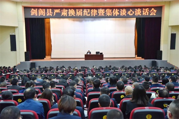 四川新闻网消息(刘乐)近日,广元市剑阁县召开严肃换届纪律暨集体谈心谈话会,敦促党政班子成员、全县科级及以上领导干部带头严守换届纪律,做到守土有责、守土负责、守土尽责,确保换届圆满完成。
