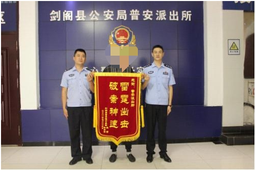 四川新闻网 消息(邓小军 记者李全民)5月17日早上,一名中年男子将印有“雷霆出击 破案神速”的锦旗送到广元市剑阁县公安局普安派出所民警手中,以表达对民警的感谢之情。