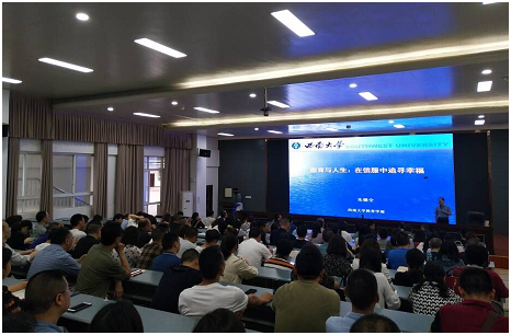 四川新闻网消息(周俊萍 权孟德 记者李全民)5月22日上午,在老校区阶梯教室,苍溪中学全体专任教师齐聚一堂,聆听西南大学朱德全教授的“教育与人生:在信服中追寻幸福”专题报告。
