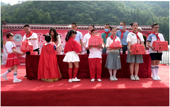 送节日纪念品。青川县委老干部局、青川县民政局联合为学生赠送了水杯,并教育学生“吃水不忘挖井人”,要学会感恩。绵阳大北农农牧有限公司为学生赠送了文具,教育学生好好学习,努力成长国家有用之才。