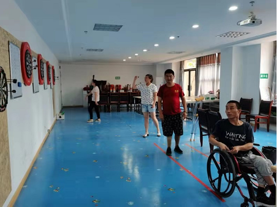 随后,督导组一行来到康托中心看望正在备战全民健身运动会的飞镖训练运动员,在教练的指导下,运动员们通过几天的训练,都已熟练掌握了飞镖技巧,进步很快。姜雷鼓励运动员在全民健身运动会上展现出残疾人自强不息拼搏向上的精神,争取得满意的成绩。
