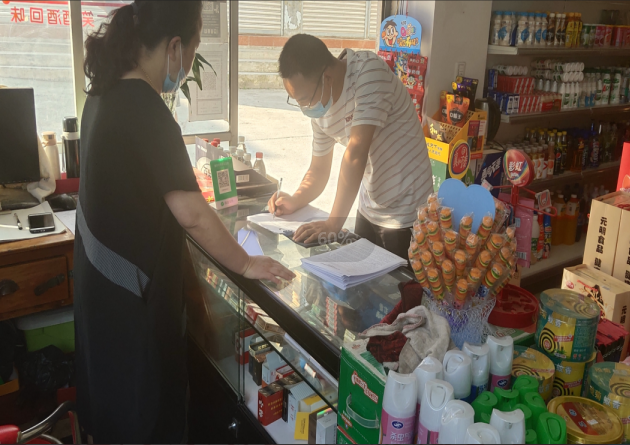 检查组一行利用赶集日向群众发放了新冠疫情防控期间食品安全的宣传资料,并对辖区内所有食品经营户落实疫情防控主体责任、进货查验记录、冷链食品等食品安全重点环节进行了专项检查,全面排查新冠疫情防控期间食品安全风险隐患。