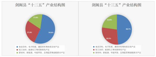结构不断优化。以食品饮料、电子机械、建筑材料为主导的传统支柱产业比重由 “十二五”期末的54.6%,下降至“十三五”期末的48.7%;以轻工纺织、能源化工为主导的优势特色产业比重由“十二五”期末的27.6%,增长至“十三五”期末的28.5%;以新材料、新能源、节能环保、生物医药为主导的战略新兴产业比重由 “十二五”期末的17.8%,增长至“十三五”期末的22.8%。