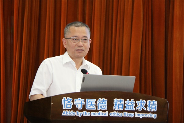 中心党委书记罗镔向辛勤工作在不同岗位的全体医师致以节日的问候和崇高的敬意。要求全院医师践行初心,下定决心,保持恒心,做有温度的新精卫人,做有高度的新精卫人,做有深度的新精卫人,把人文关怀融入每一项医疗服务过程中,聚焦专学科建设和科研教学,注重人才梯队建设与培养,积极开展新技术新项目。同时,要做到干事有激情、做事高标准、处事能坚韧、遇事能担当、成事守规矩,凝聚起实现“四轮驱动双一流”建设目标的强劲合力。