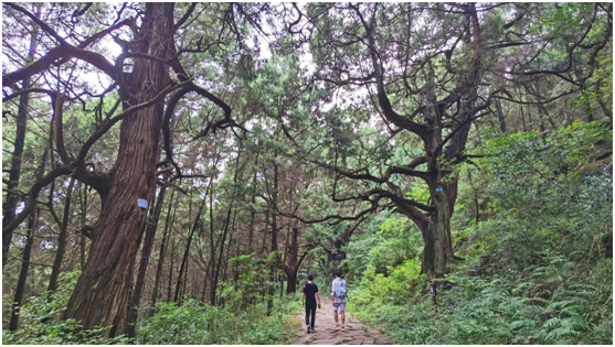 8月21日,小分队队员到达广元市剑阁县翠云廊、剑门关等地探寻红色足迹,了解红四方面军长征线路和长征进程,感受革命先辈艰难的行军过程。