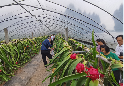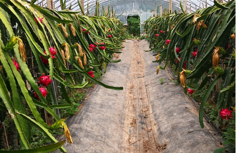 近日,记者走进联合村火龙果种植基地,看到一株株火龙果树整齐划一,火龙果枝干翠绿粗壮,上面结满了圆滚滚、红彤彤的火龙果,让人垂涎欲滴。对基地周边的村民来说,这片基地生长的不止是火龙果,更是他们对美好生活的向往。