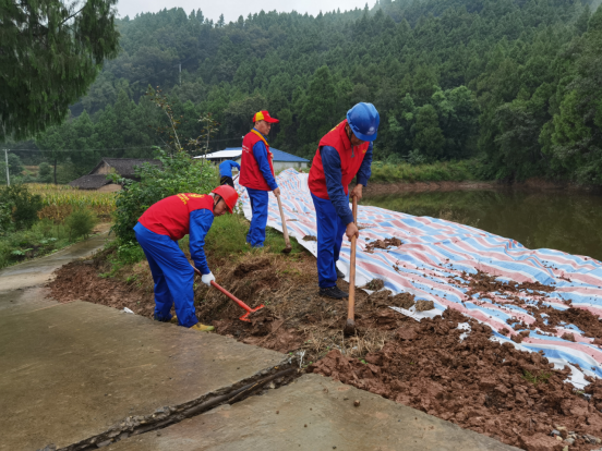 冒着小雨,党员服务队队员、驻村帮扶人员们又背上工具包,购买110米篷布,对剑南村5组、10组公路滑坡路段紧急排危,消除安全隐患,保障村民正常出行。