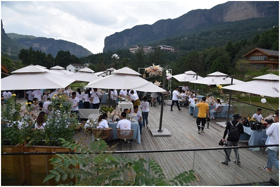 婚礼氛围喜庆,社会各界近千人见证了新人们最幸福的时刻,不少游客朋友拍照录像,一时间抖音平台、朋友圈等被刷屏,不少网友纷纷点赞表示:集体婚礼庄重、热闹,扩大了喜讯传播的范围,破除旧俗和陈腐观念引领了婚事新办的新风尚。