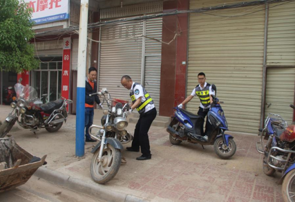 图为白龙镇城管工作人员整治车辆乱停乱放