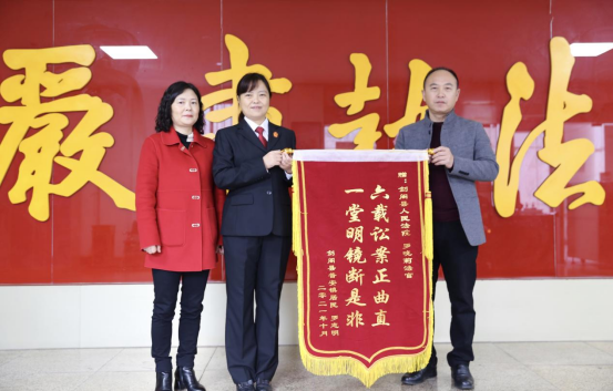 10月27日,剑阁法院的接待室里,罗某与妻子激动的握着法官的手,将一面印有“六载讼案正曲直,一堂明镜断是非”的锦旗送到承办法官罗晓莉手中,表达他们对法官一丝不苟、秉公办案的工作态度赞扬和感谢!
