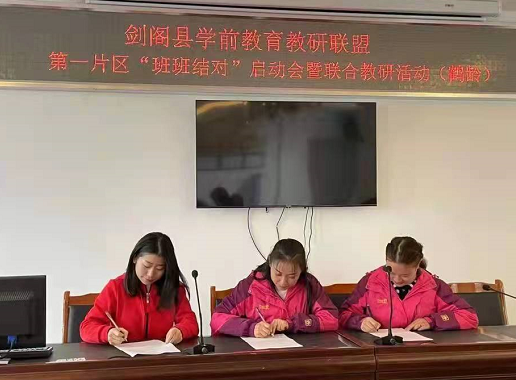 在“班班结对”启动会上,各小组长解读了“班班结对”的目的,对结对活动的开展提了明确要求并安排了阶段性工作。老师们郑重的在《剑阁县学前教育教研联盟第一片区班班结对承诺书》上签上名字,并与结对老师热情相拥。